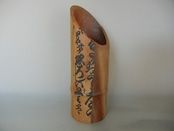 柿渋染和紙・文字和紙張り竹筒。