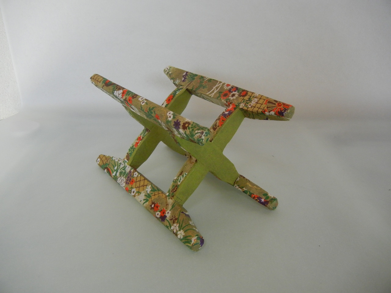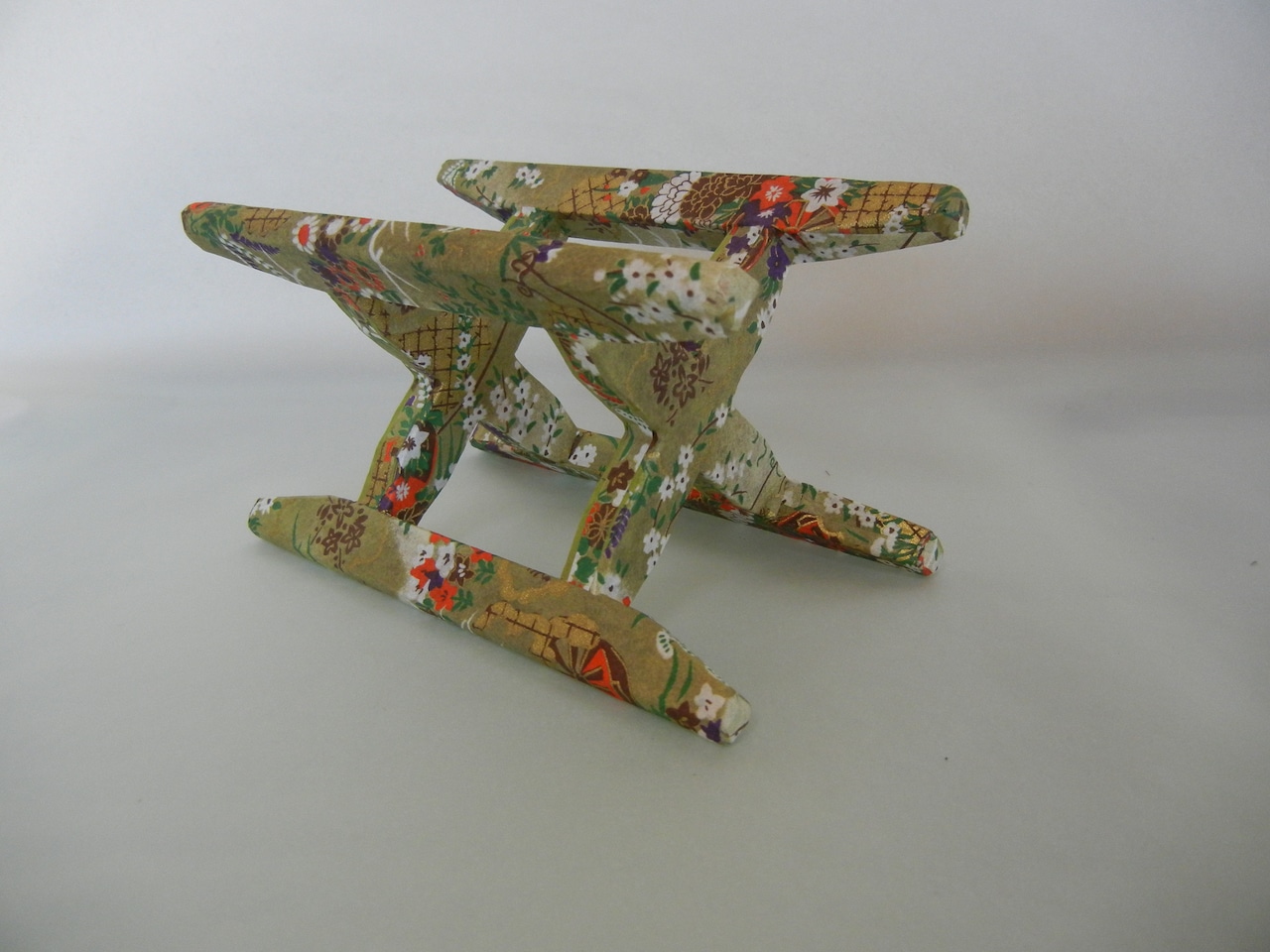 木造の糸巻きに、柿渋塗りの和柄和紙張り